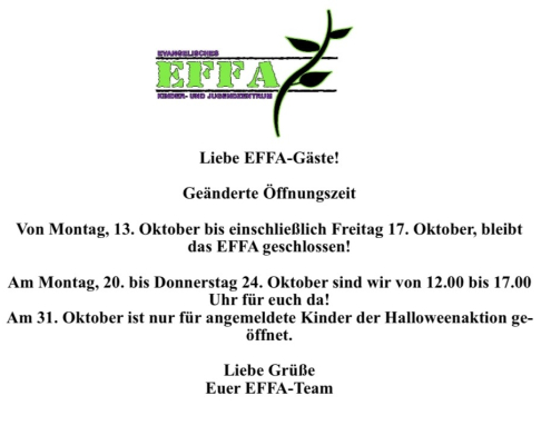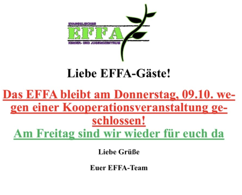 Wir sind ein offenes Kinder- und Jugendfreizeitzentrum im Herzen von Waldniel. Es spielt keine Rolle, welcher Konfession Ihr angehört, ob Ihr ein Handicap habt oder mit welcher Haut- oder Haarfarbe Ihr geboren wurdet. Bei uns im EFFA sind alle herzlich willkommen, die sich unterhalten und spielen möchten, selber ehrenamtlich dabei sein möchten oder unsere Hilfe brauchen.
