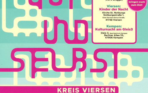 Unsere Aktionen finden in Brüggen (Blacklight DJ-Battle), in Viersen (Kinder der Nacht) und in Kempen (Kulturnacht am Gleis 3) statt.