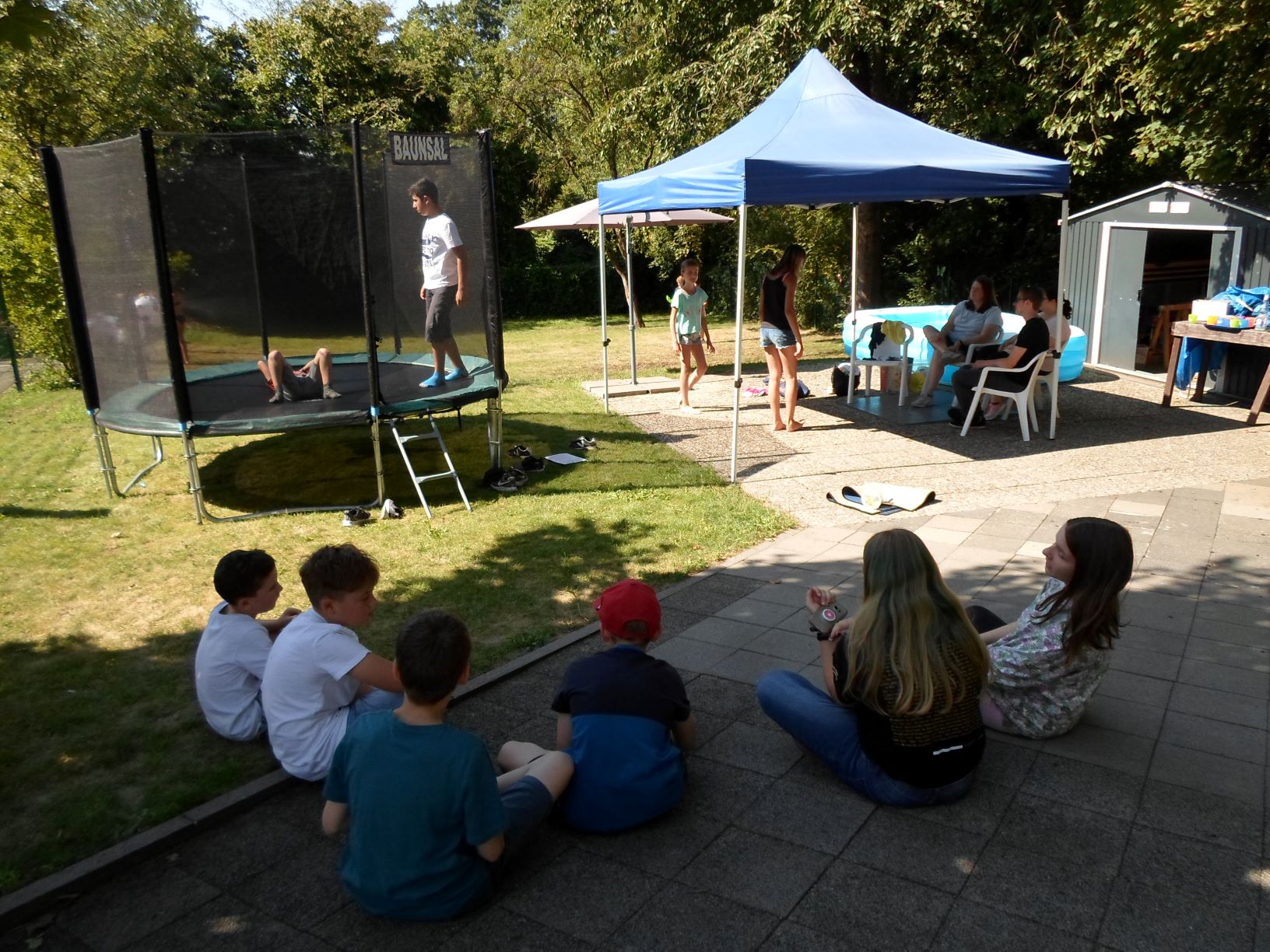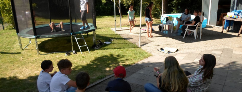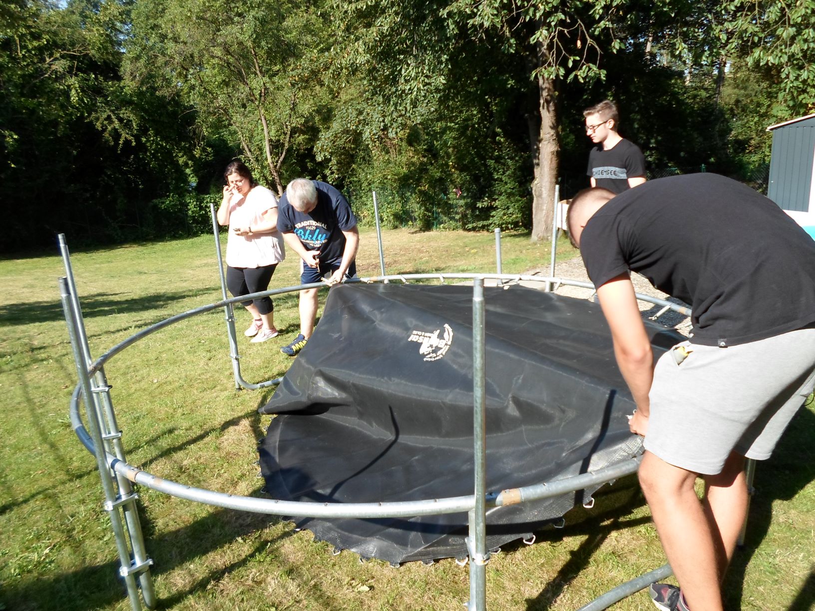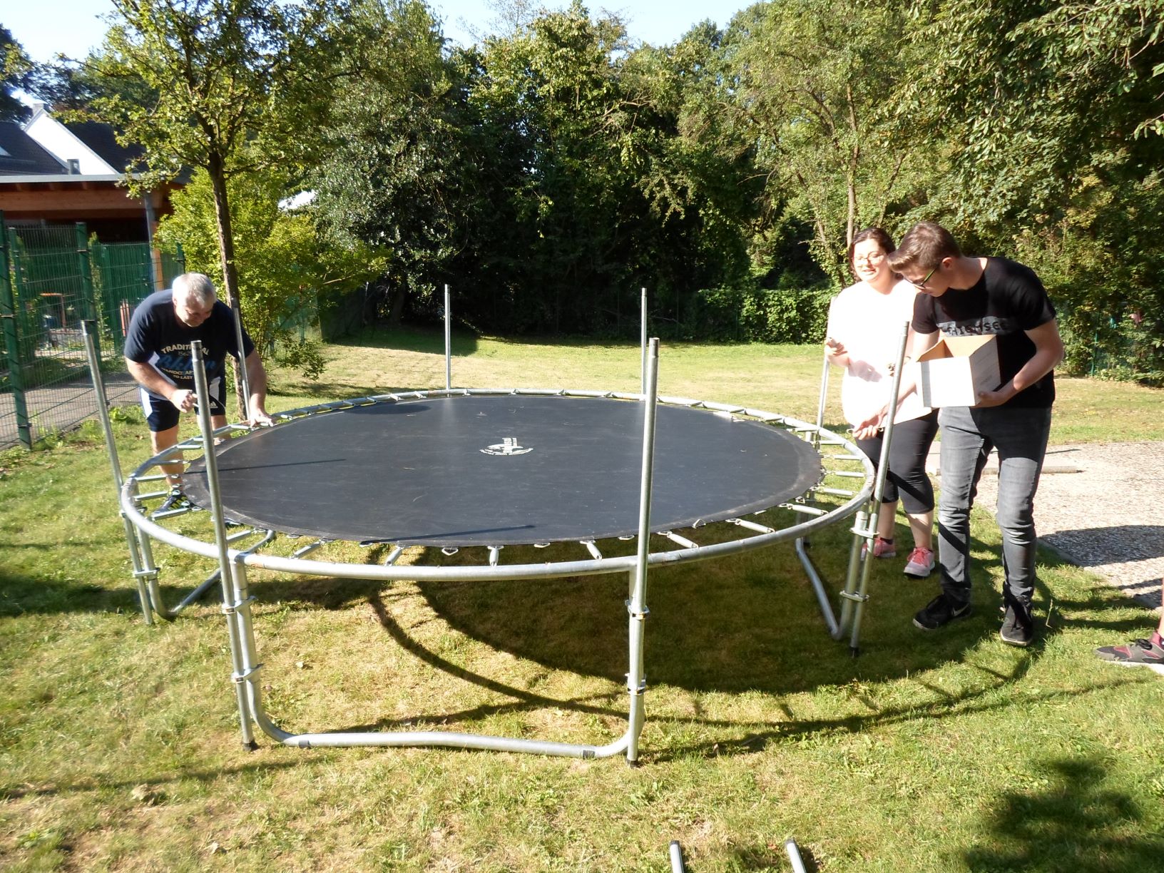 Seit der dritten Sommerferienwoche besitzen wir ein großes Trampolin mit Netz.