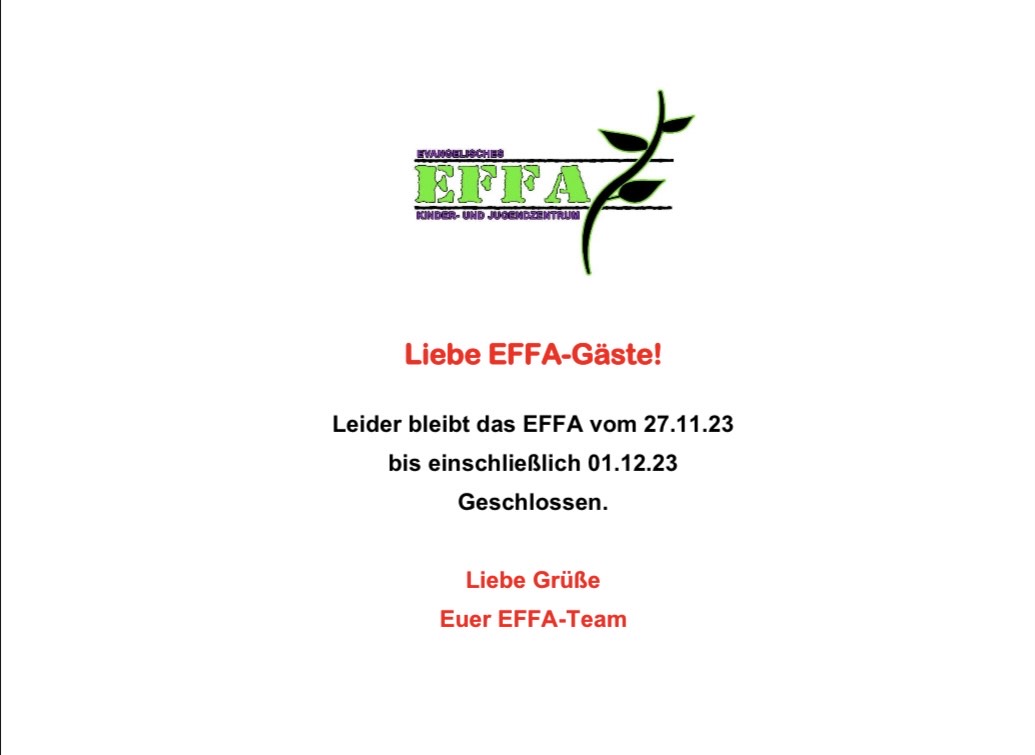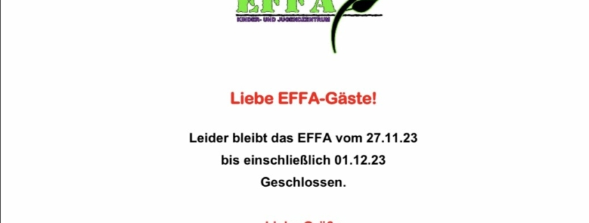 EFFA Geschlossen über Weihnachten und Neujahr!