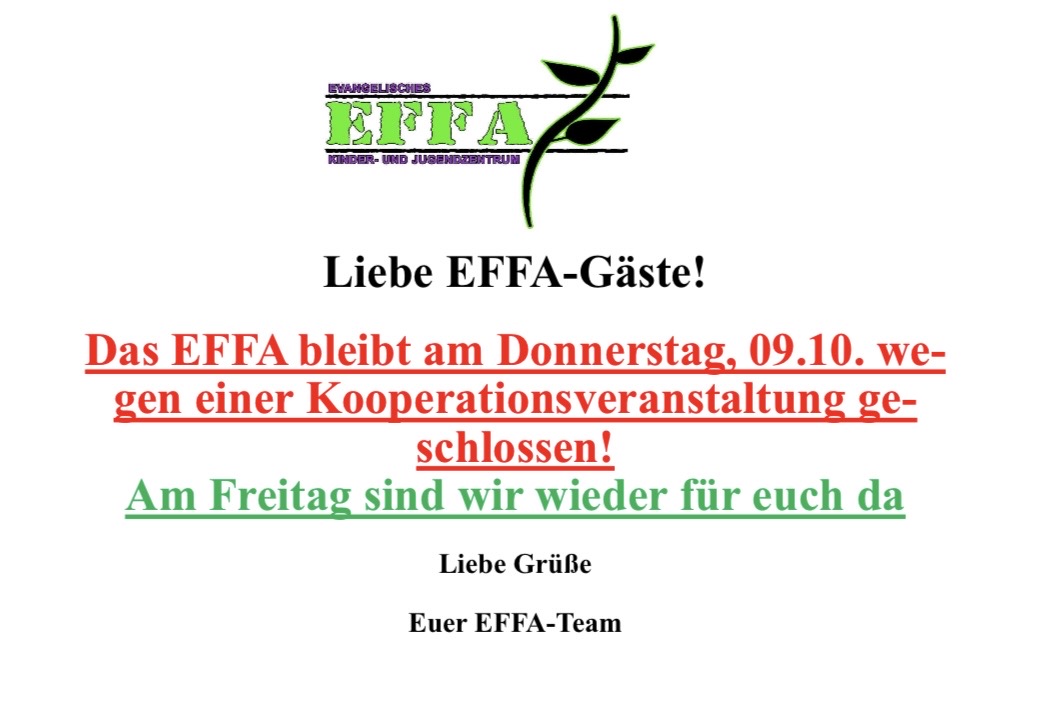 Weil wir es immer wieder gefragt werden: Nein, die Räume des EFFA kann man nicht mieten.